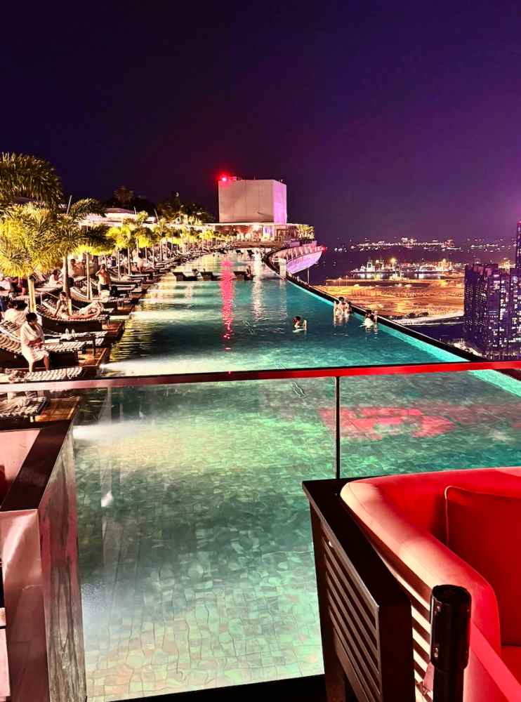 Tipp: Das Marina Bay Sands hat auch eine Aussichtsplattform, zu der man hochfahren kann. Für um die 30 Euro ist die Rooftop-Bar aber eine wunderbare Alternative, bei der noch ein Getränk inklusive ist.